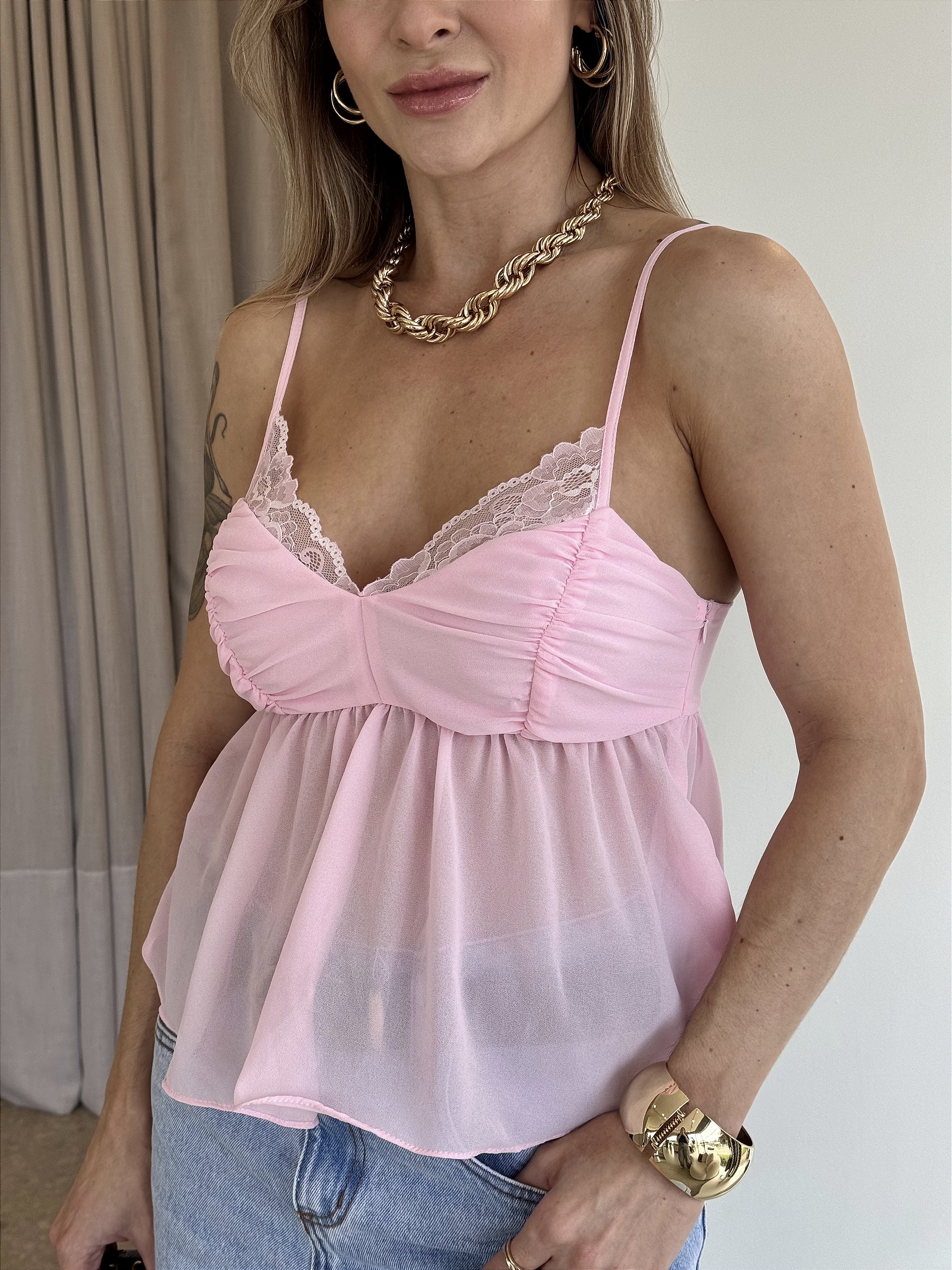 Uma blusa versátil e romântica, ideal para compor desde produções casuais até looks mais elaborados, sempre com aquele charme suave que é a cara da estação.