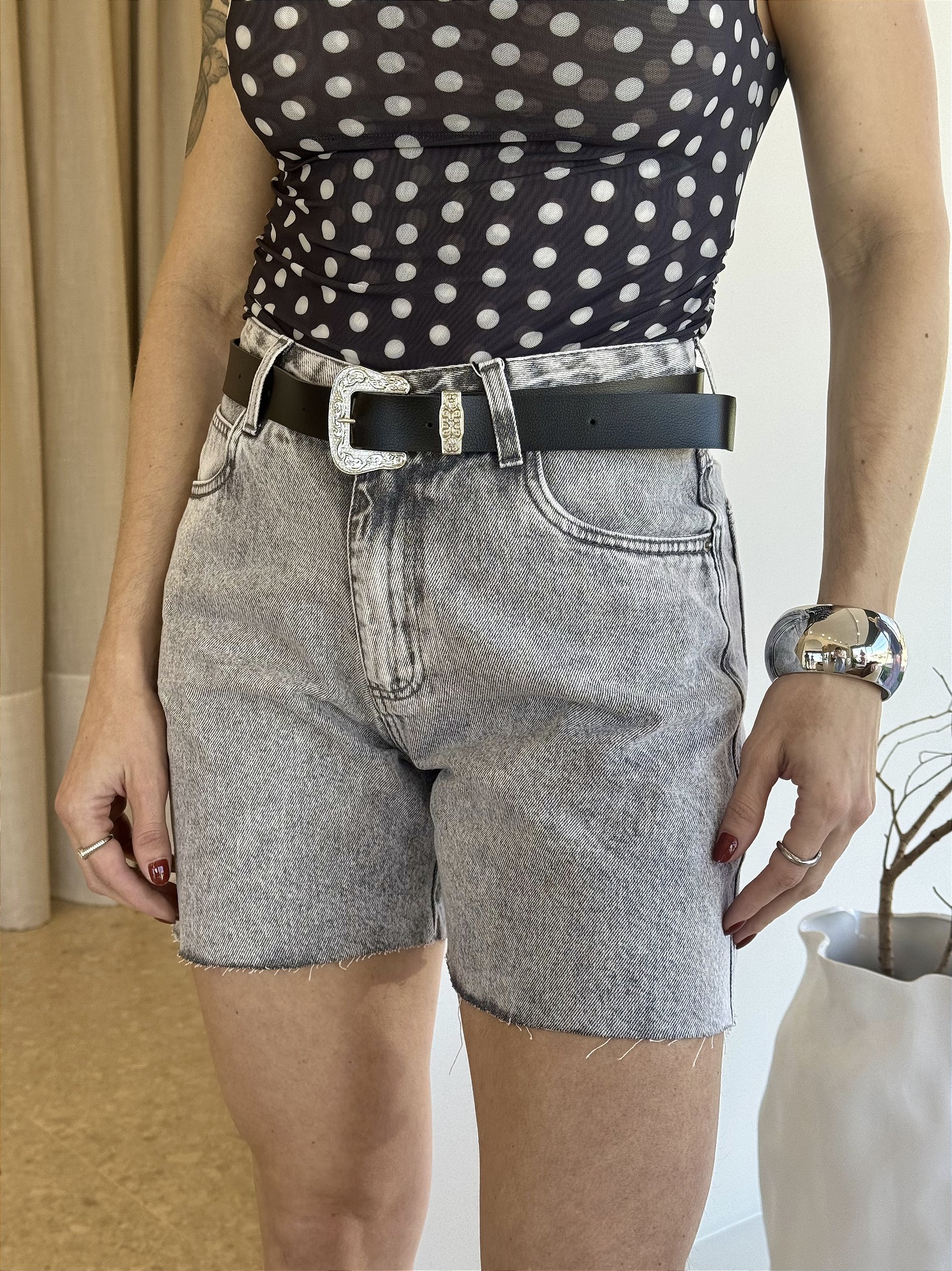 O diferencial fica por conta do cinto preto com fivela prata, que valoriza ainda mais a peça e permite diferentes combinações estilosas. Uma bermuda curinga para compor looks casuais ou fashionistas com facilidade.