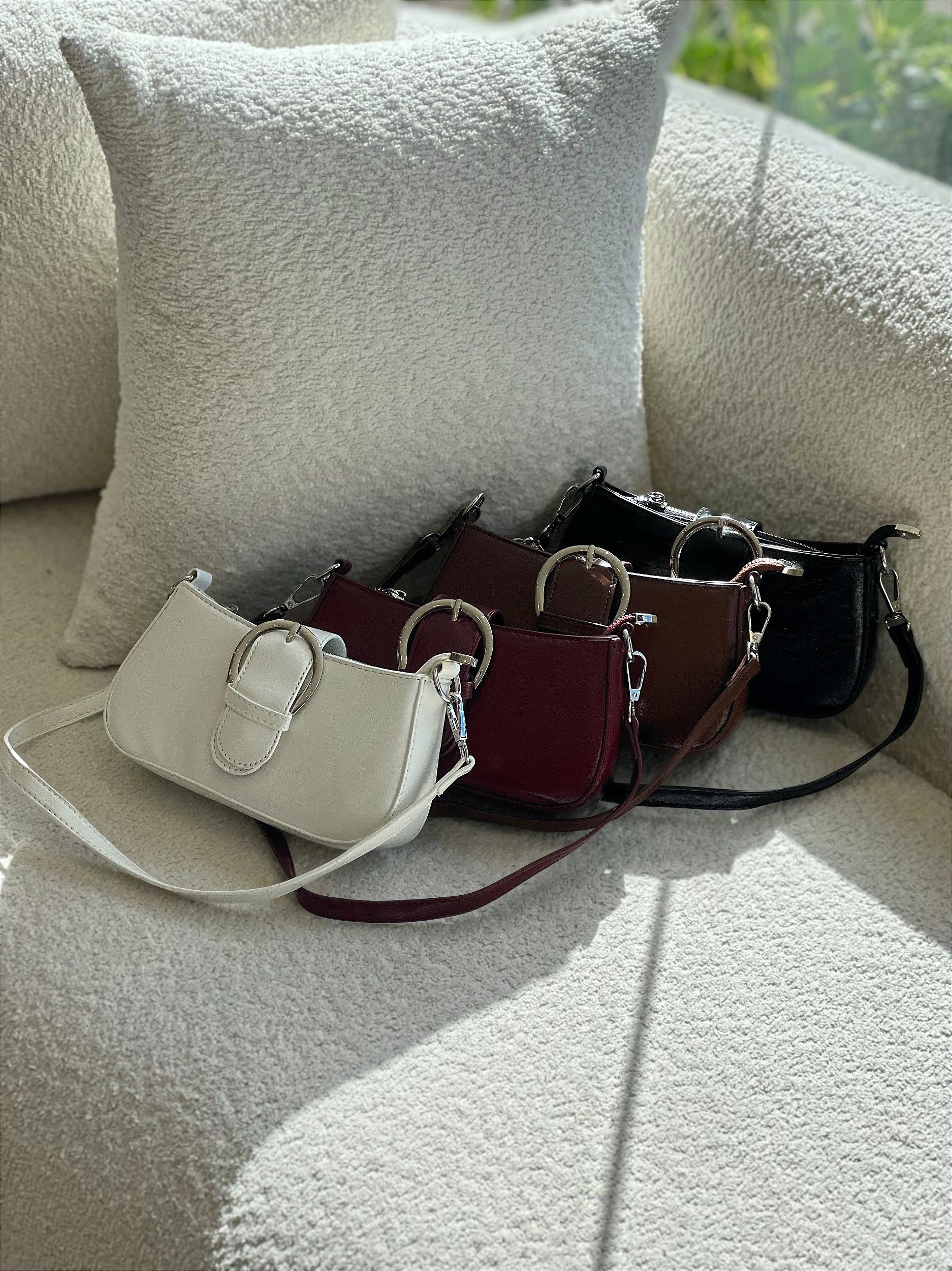 Possui uma alça menor para usar no ombro e outra alça avulsa maior, permitindo diferentes formas de uso conforme a proposta do look. Conta com fechamento frontal por fivela fake com botão de pressão, além de fechamento interno em zíper que garante mais segurança.