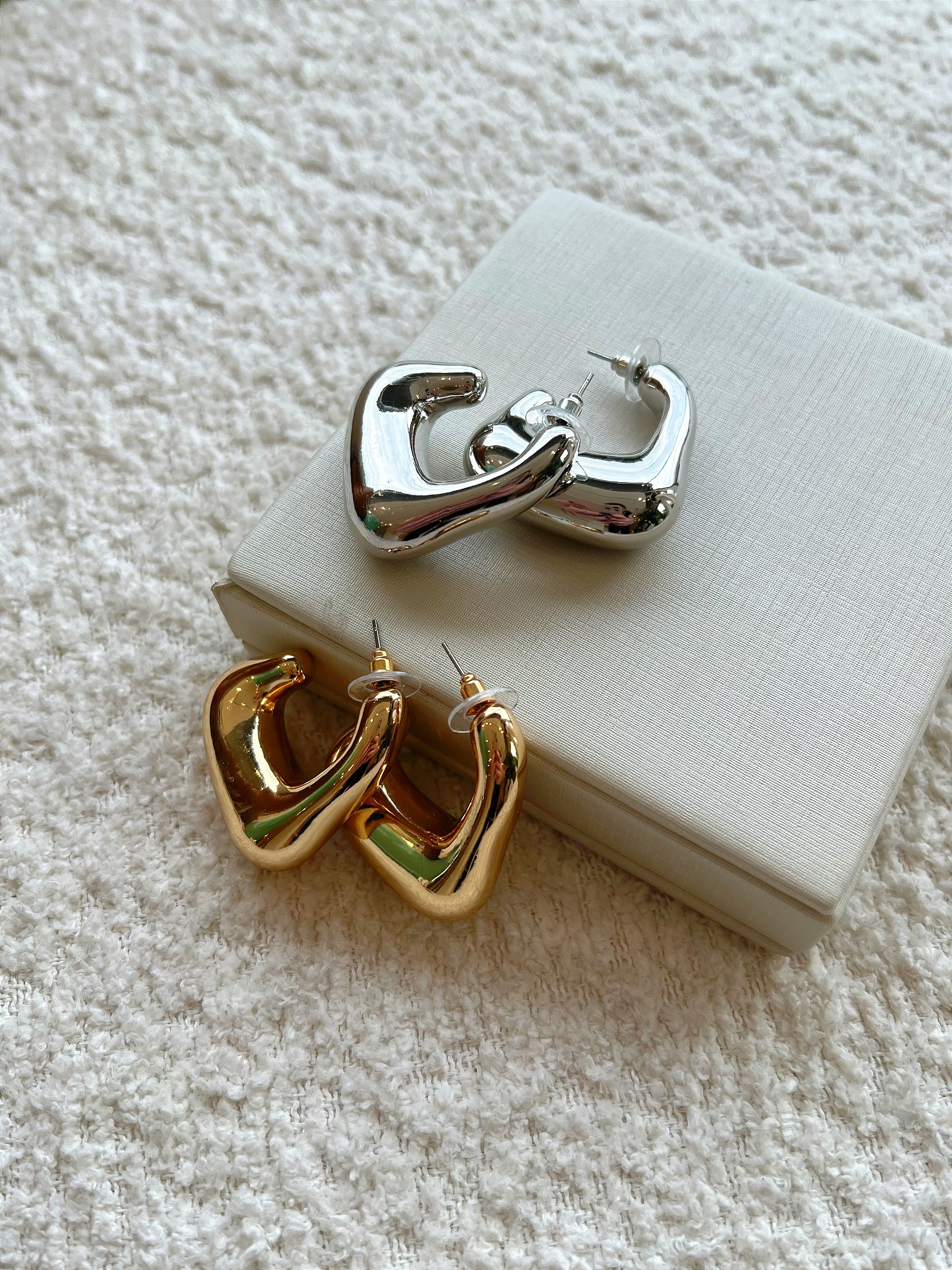 O Brinco Maly traz um design orgânico e moderno, com formato maior que valoriza o rosto e garante destaque instantâneo ao look. Mesmo com seu tamanho marcante, é leve e confortável, perfeito para usar o dia todo com praticidade e estilo.
