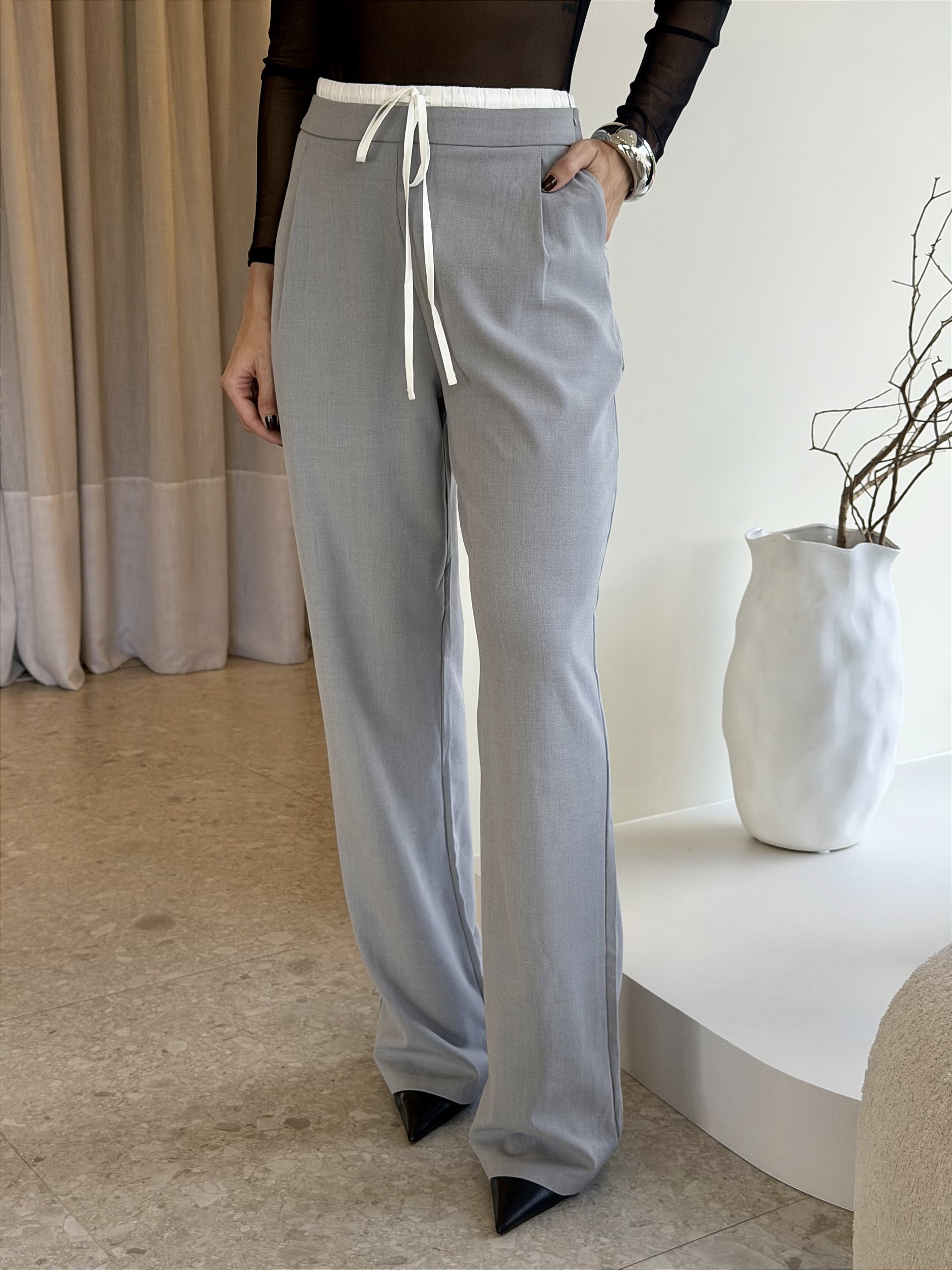 Com modelagem pantalona, garante um caimento sofisticado e elegante. Uma calça diferente, mas ao mesmo tempo versátil e atemporal, perfeita para compor desde produções casuais até looks mais elaborados.