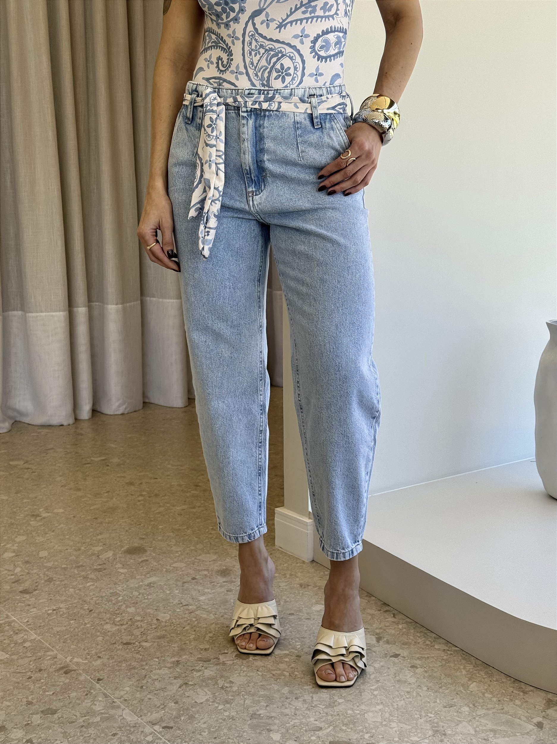 A Calça Mayara traz a combinação perfeita entre modernidade e versatilidade. Em jeans de lavagem clara, aposta na modelagem baggy, que garante um caimento soltinho, confortável e super atual. A peça possui cintura alta com cós com passantes, além de bolsos frontais e posteriores funcionais, unindo praticidade e estilo no dia a dia.