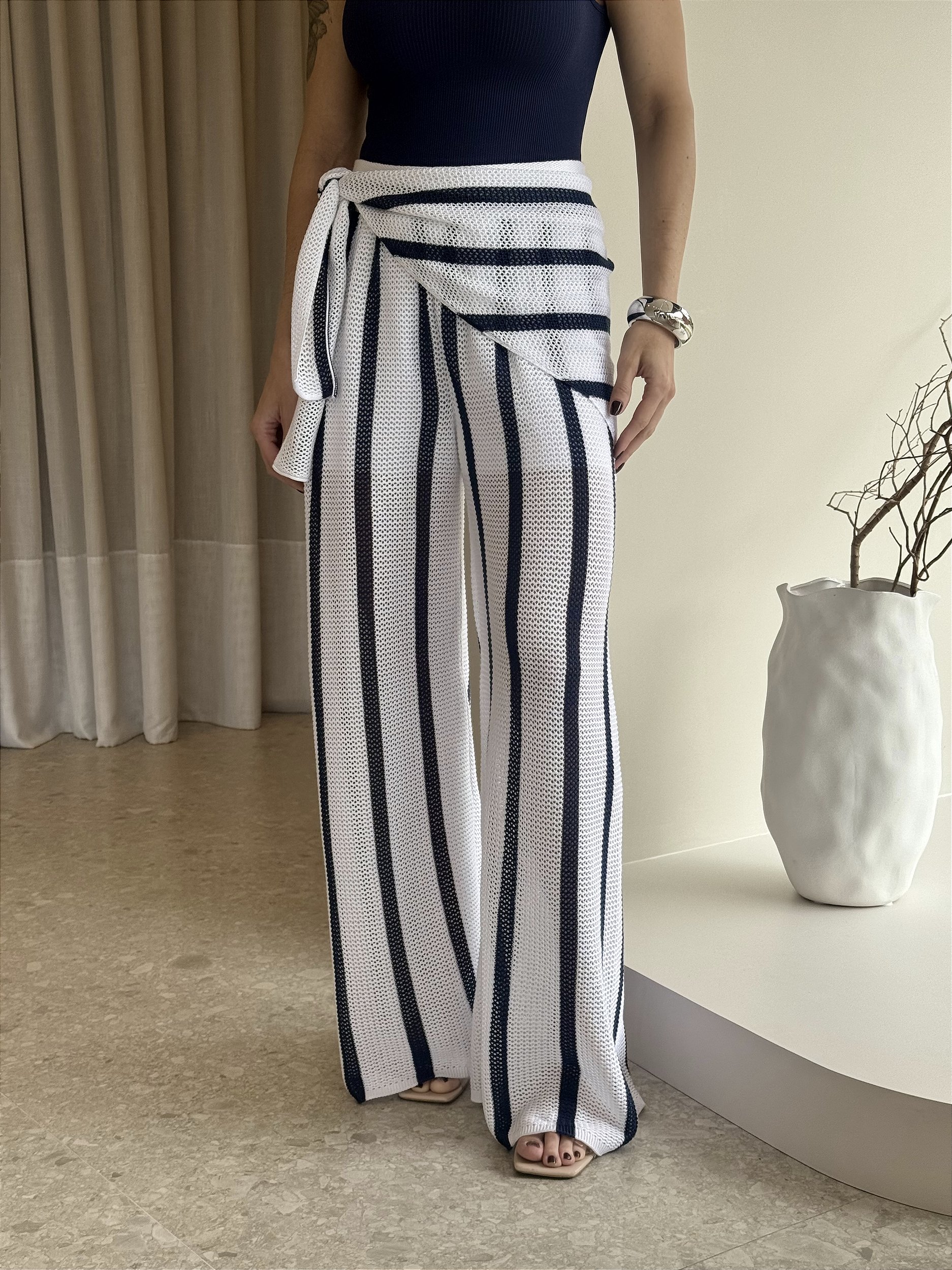 A Calça Ananda é aquela peça versátil que transforma qualquer look. Confeccionada em tricot macio, possui forro short embutido que garante conforto e segurança, além da cintura alta com cós de elástico que se ajusta perfeitamente ao corpo. Sua modelagem pantalona oferece um caimento elegante e fluido, ideal para os dias quentes. Acompanha um lenço superversátil, que pode ser usado como cinto, acessório de cabelo ou até como top, permitindo múltiplas combinações e entregando toda a vibe fresca e estilosa do verão. Uma peça completa para criar looks modernos e cheios de personalidade.