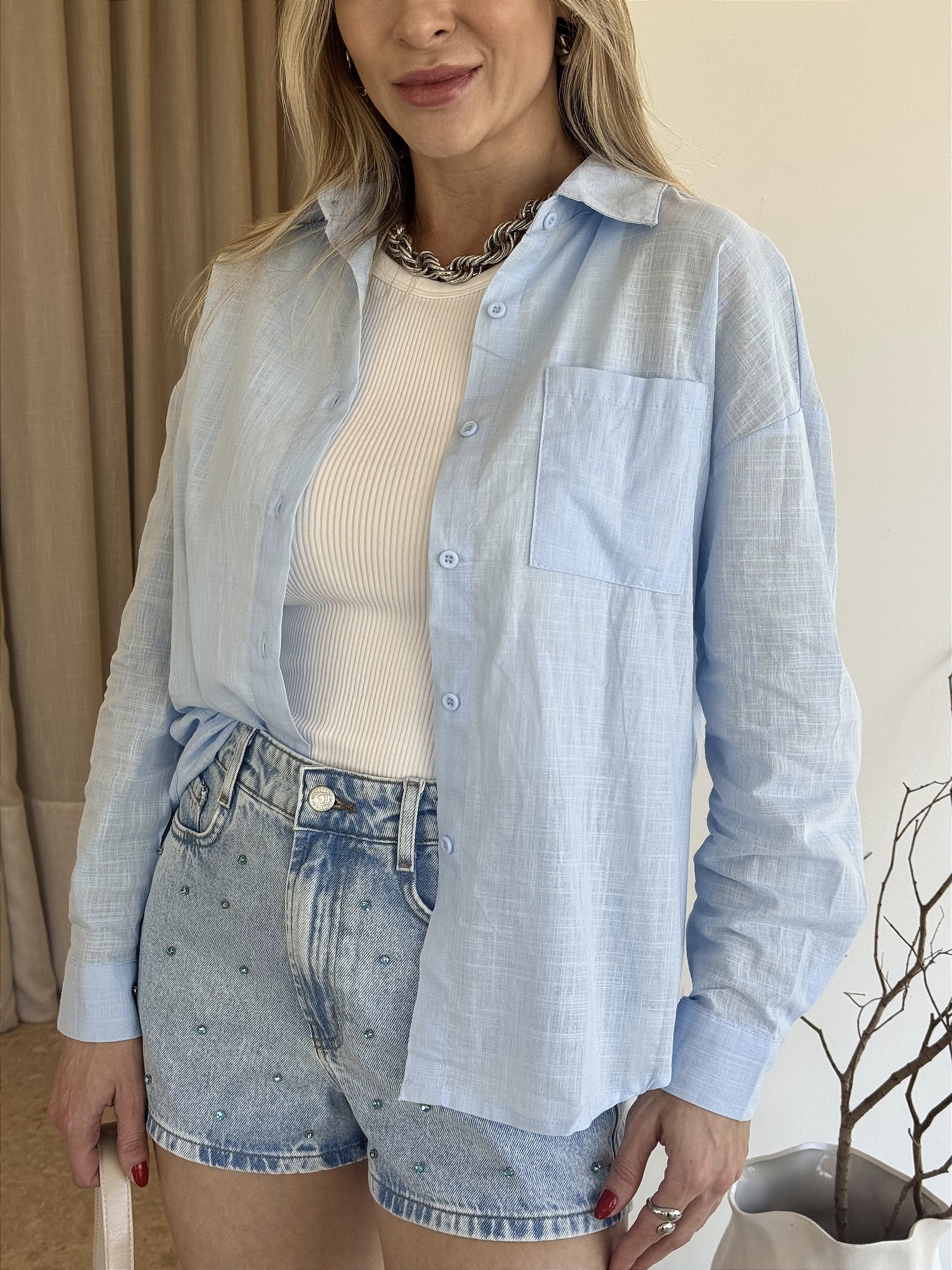 A Camisa Elisandra é confeccionada em tecido leve e fluido, garantindo conforto e caimento impecável. Possui bolso frontal e fechamento por botões, trazendo o toque de elegância e praticidade que toda peça atemporal deve ter. Uma camisa clássica e versátil, perfeita para compor desde looks casuais até produções mais sofisticadas.