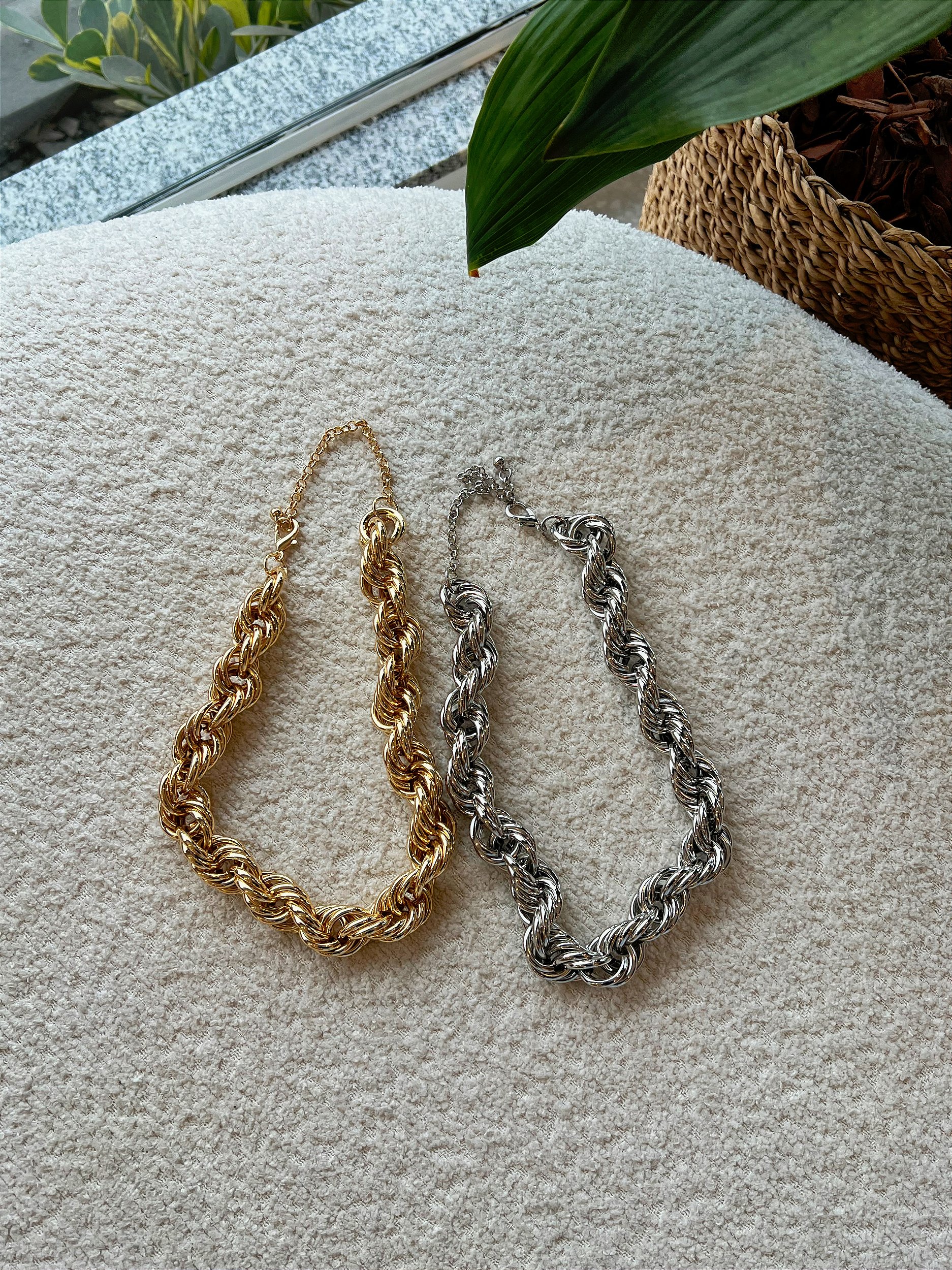 O Colar Tamy é aquele acessório versátil e elegante que faz toda a diferença na composição. Feito em cordão baiano com elo de correntes, está disponível nas versões prata e dourado, permitindo combinar com diversos estilos e ocasiões.