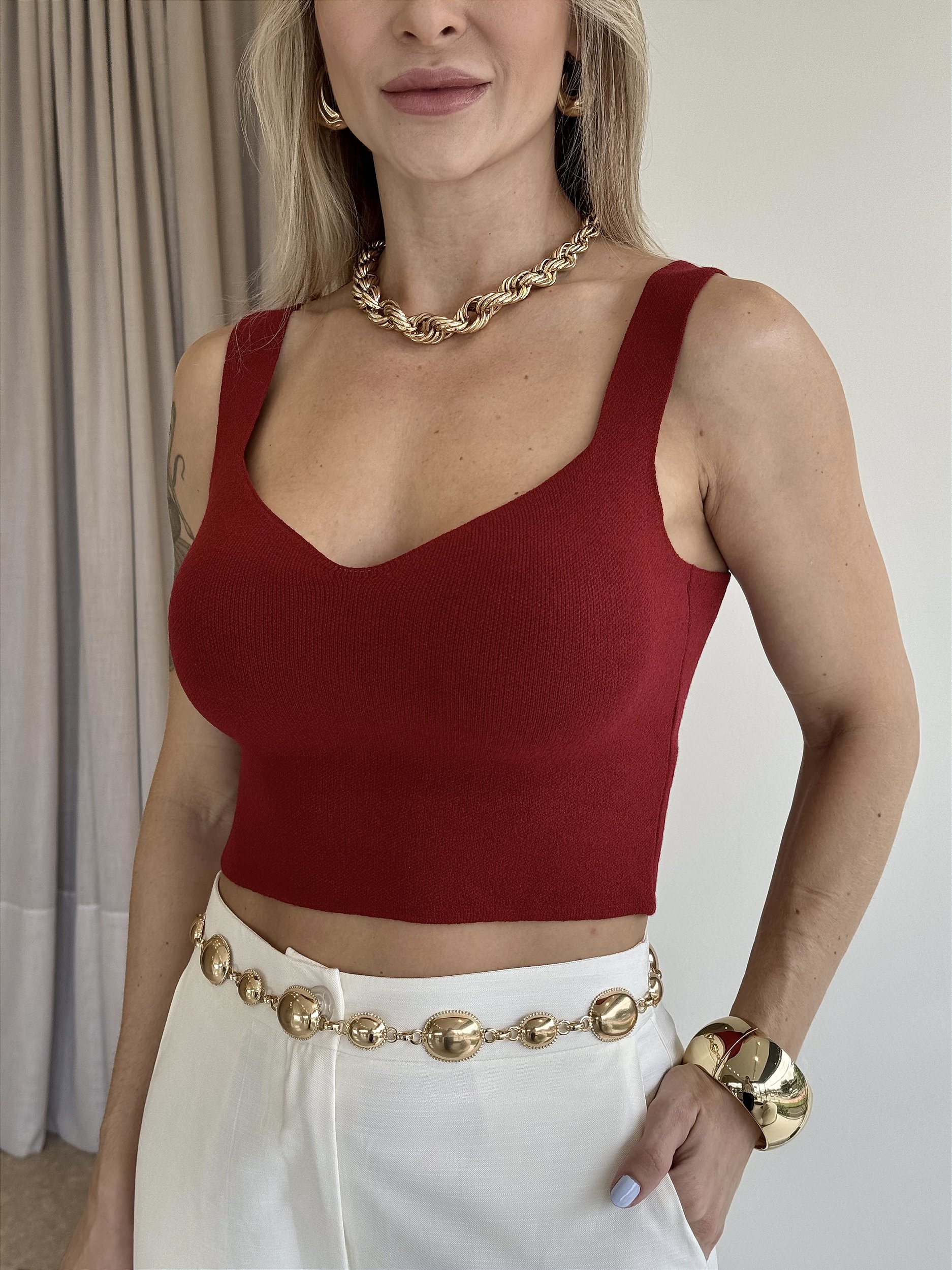 O Cropped Vick é a combinação perfeita de charme e versatilidade. Confeccionado em modal tricot, ele possui modelagem cropped e alças largas que permitem o uso com sutiã, garantindo conforto e segurança. O destaque fica por conta do decote coração, que traz um toque delicado e feminino à peça.