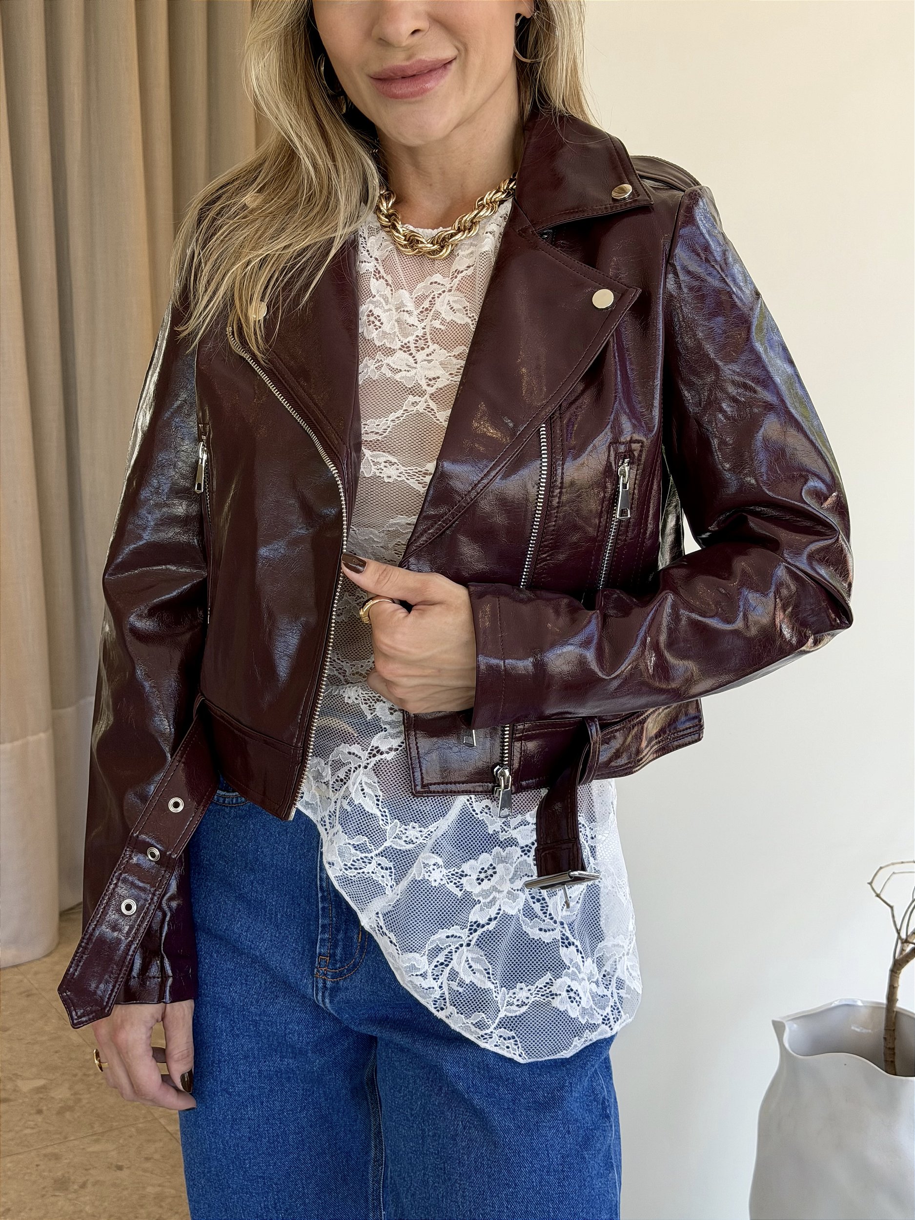 A Jaqueta Ramona é aquela peça indispensável que transforma qualquer look. Confeccionada em courino de qualidade, ela une estilo e durabilidade com um visual moderno e atemporal. Possui bolsos frontais com zíper, fechamento frontal em zíper prata e zíper nos punhos, trazendo um toque urbano e cheio de personalidade.