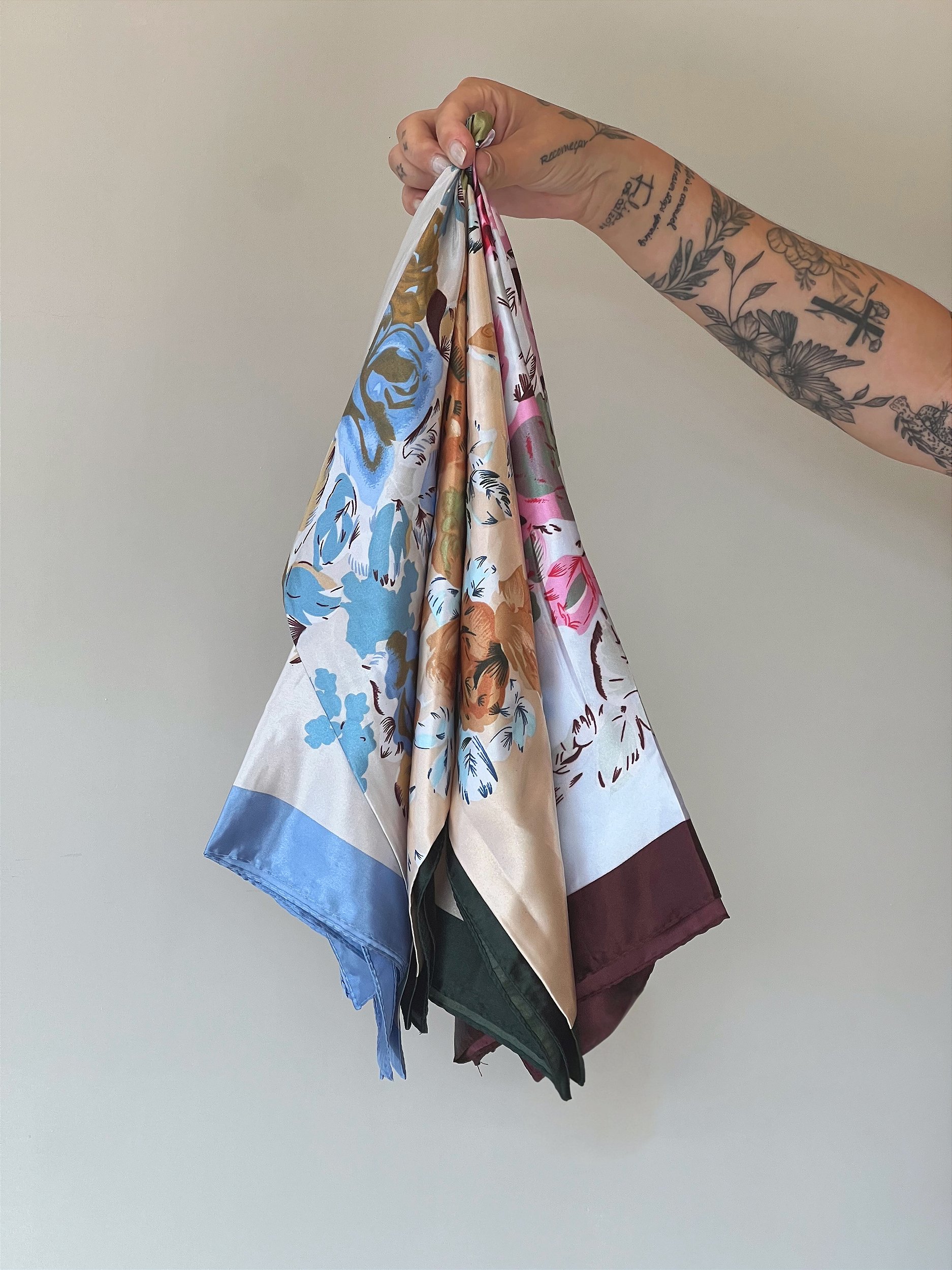 Sua estampa floral com borda em destaque valoriza ainda mais o design da peça, criando um visual delicado e cheio de personalidade. Versátil, pode ser combinado com camisas, vestidos, t-shirts, além de ser usado no cabelo, no pescoço ou como detalhe na bolsa.