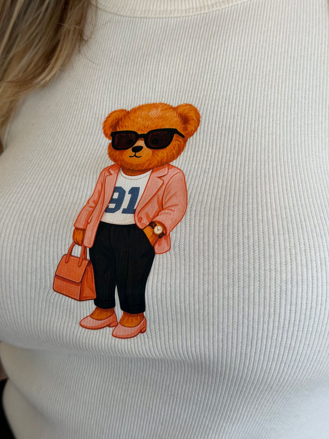 A Regata Teddy é aquela peça essencial que une conforto e estilo. Confeccionada em ribana canelada, possui toque macio, leve e confortável, ideal para o dia a dia.
