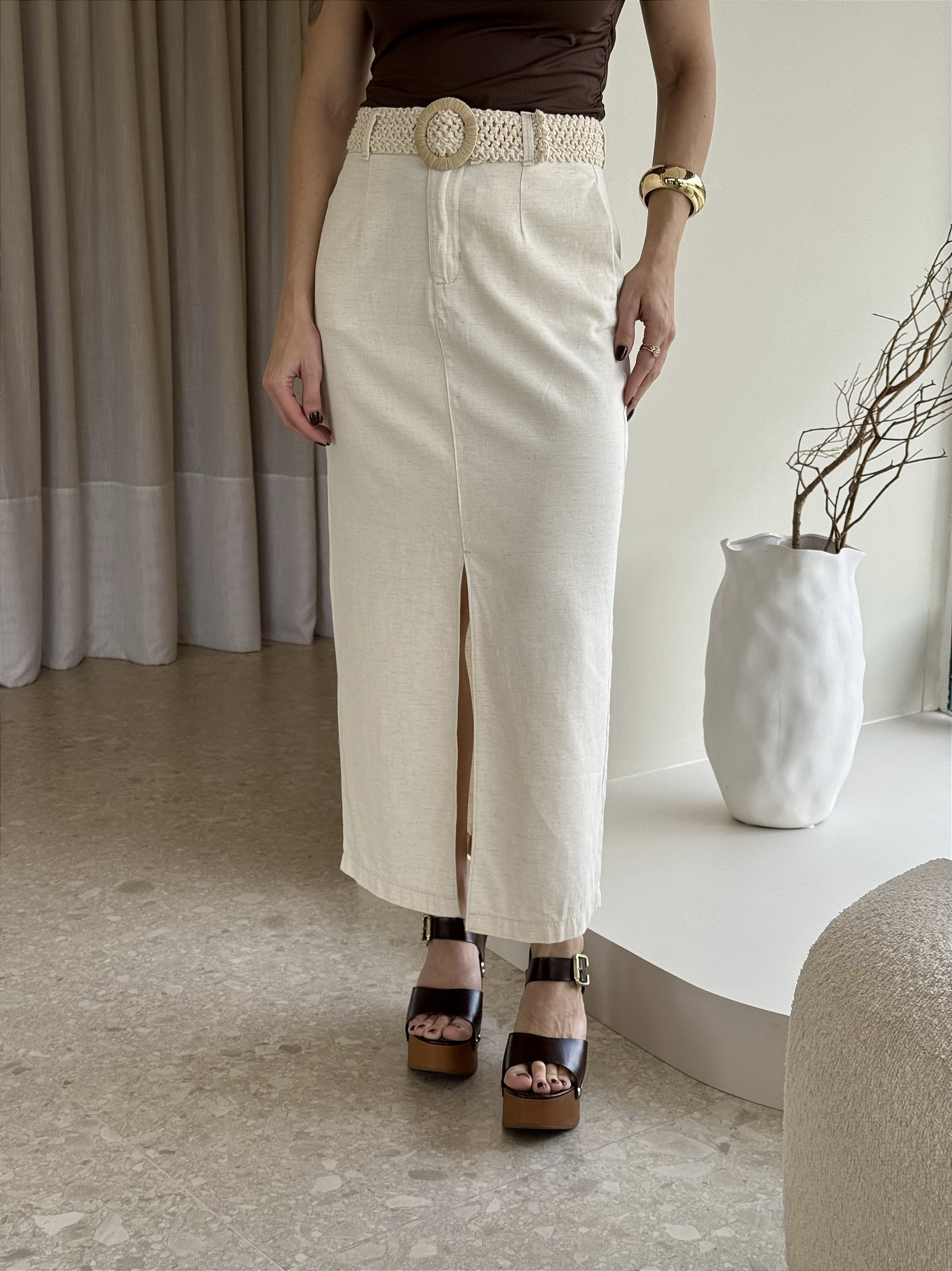 A Saia Beatrice é a peça perfeita para quem busca leveza, conforto e aquele toque sofisticado que só o linho proporciona. Com comprimento midi e cintura alta, ela modela o corpo na medida, trazendo uma proposta moderna e super atemporal.