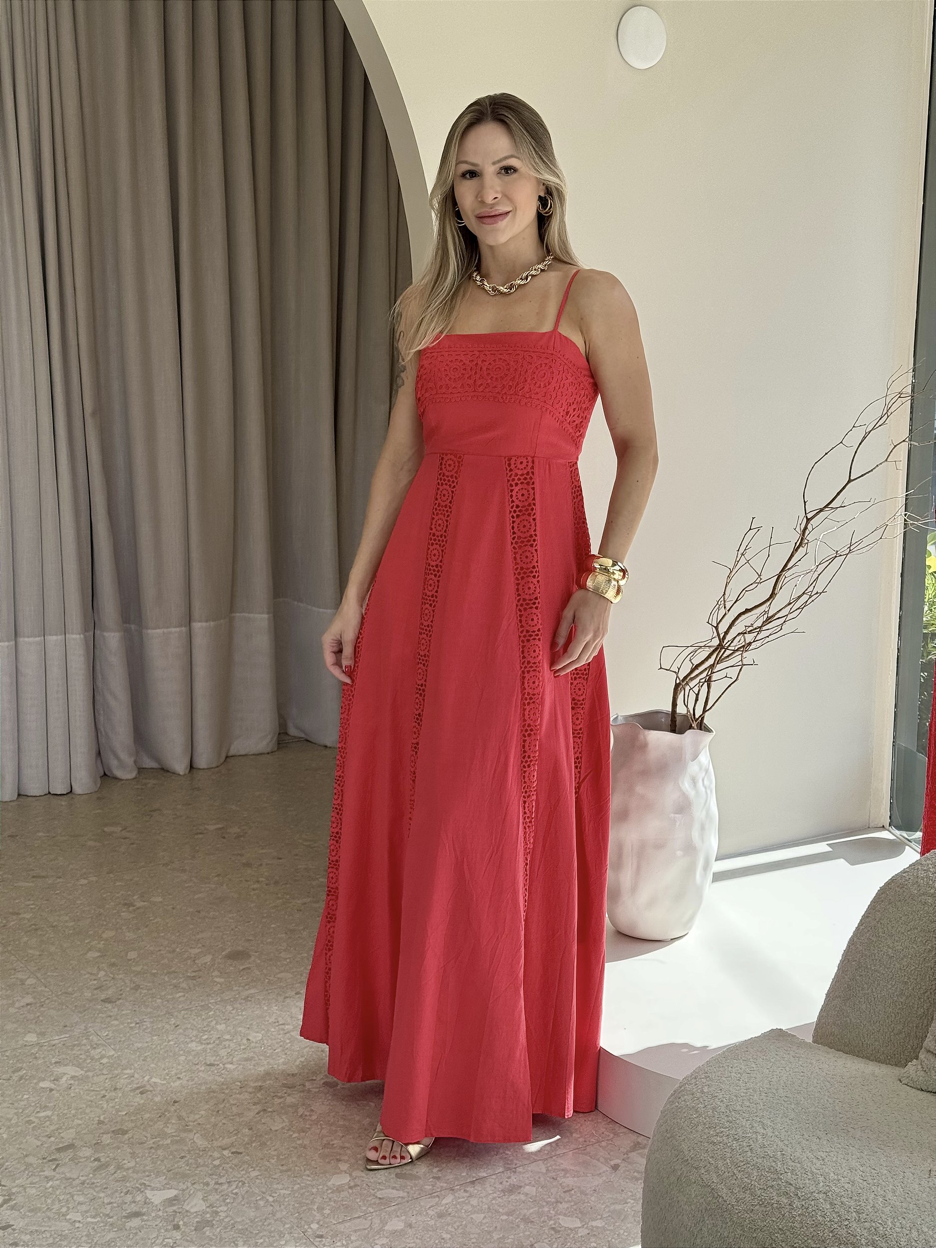 O Vestido Karla é a escolha perfeita para quem busca um visual leve, delicado e versátil. Com comprimento longo, ele possui decote quadrado, que valoriza o colo de forma elegante, e detalhes em lese no busto e na parte frontal, trazendo um toque romântico e sofisticado à peça. As alças finas e reguláveis garantem melhor ajuste, enquanto o lastex nas costas proporciona conforto e adaptação ao corpo. Conta ainda com forro embutido, oferecendo segurança e acabamento impecável, e fechamento posterior por zíper invisível, que mantém o visual limpo e refinado. Um modelo que transita com facilidade entre ocasiões especiais e produções mais leves para o dia a dia, combinando perfeitamente com sandálias, rasteiras ou até acessórios mais elegantes.
