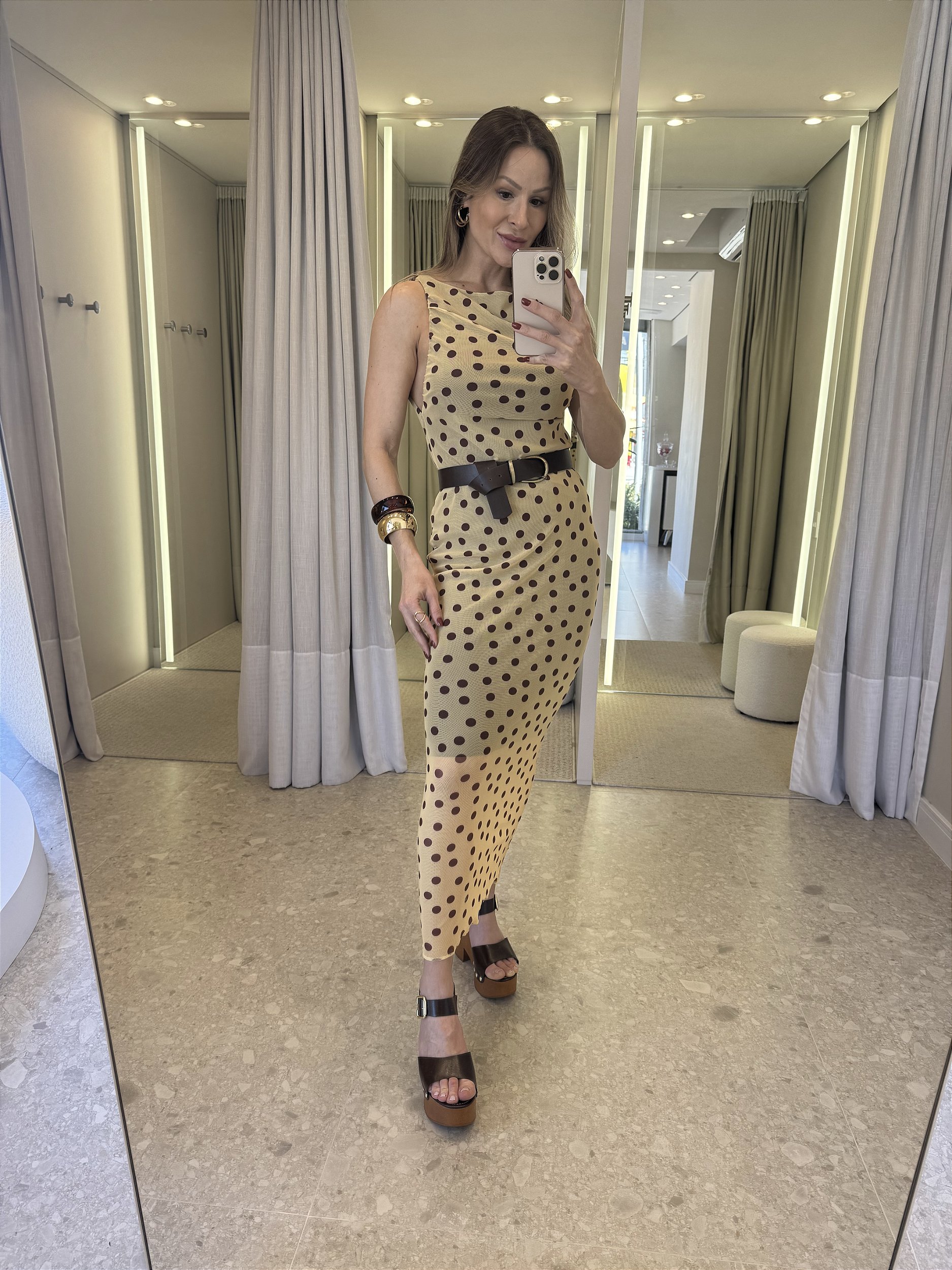 O Vestido Morgana é confeccionado em tule delicado com estampa poá, trazendo um toque romântico e ao mesmo tempo moderno para o visual. Seu shape justo valoriza a silhueta, enquanto a modelagem regata com cava maior garante conforto e estilo despojado.